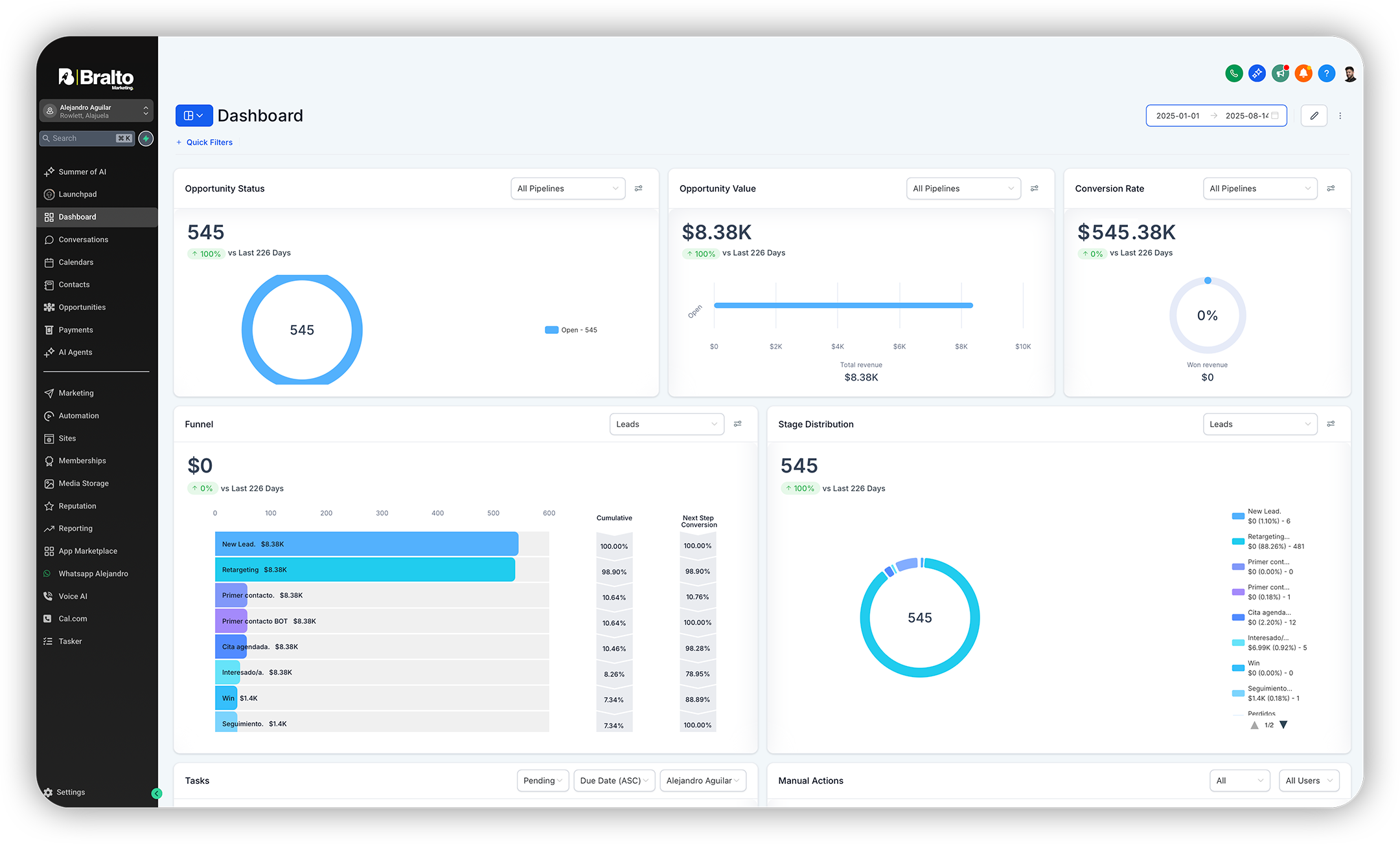 CRM, funnels, email marketing, WhatsApp, automatizaciones, páginas web y mucho más… todo incluido en tu cuenta de Bralto.